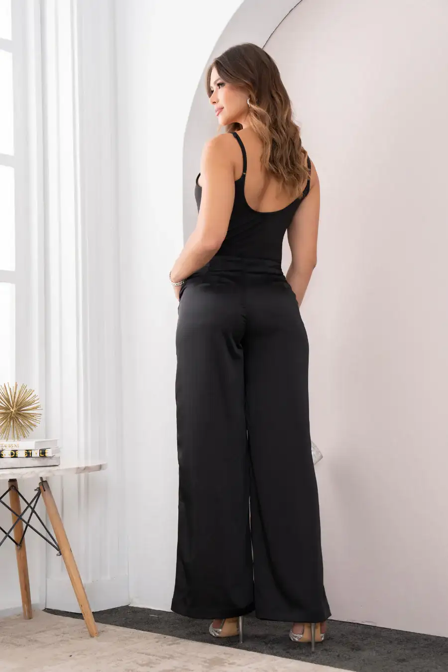 Body Con Tiras Fijas Ajustables, Escote U en Espalda, Detalles Frontales De Piedras Brillantes. Silueta Ajustada Con elongación. Disponible en Color Negro e Ivory