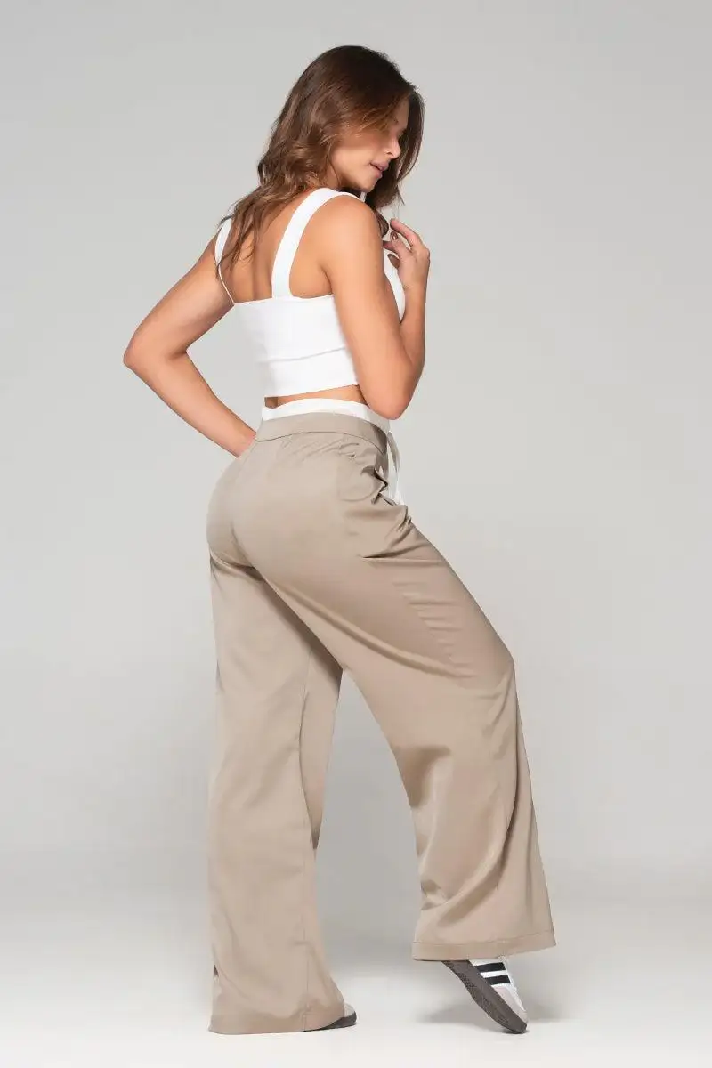 Pantalon Wide Leg Tiro Alto Doble Pretina con cierre Ajustable con Cordon Marca Trucco´s